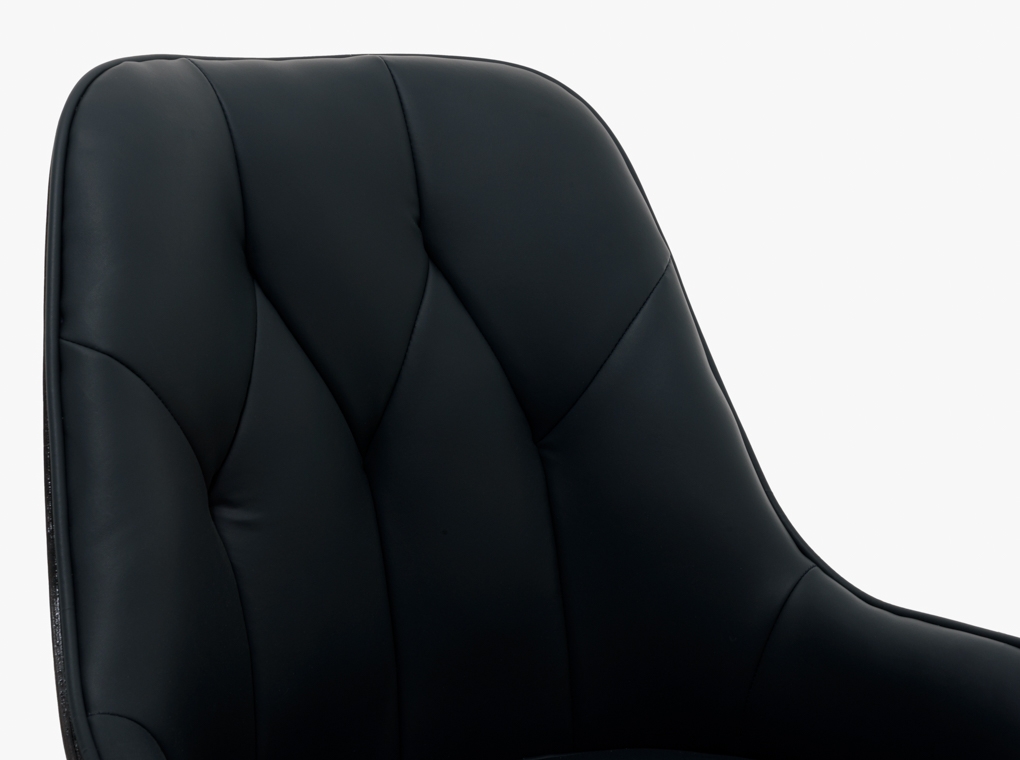 Elegáns étekzőszék hátulról fényes fa borítással, antracit textilbőr kárpitozással.