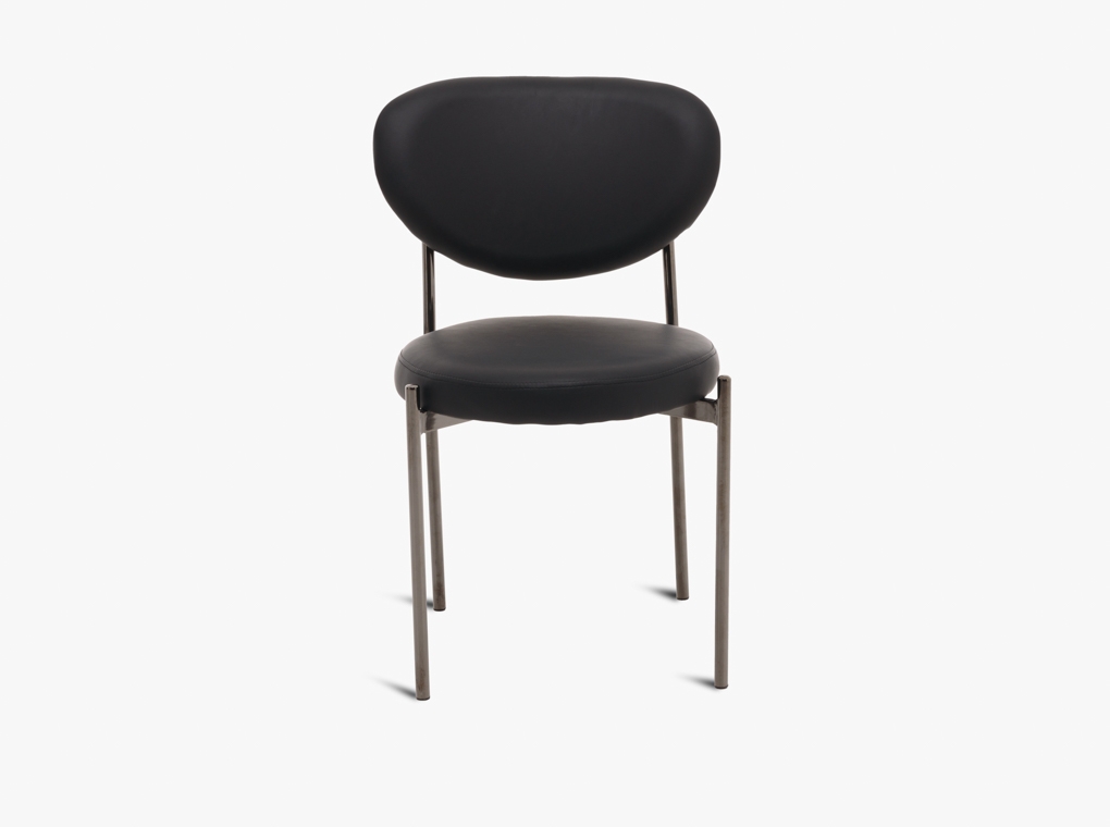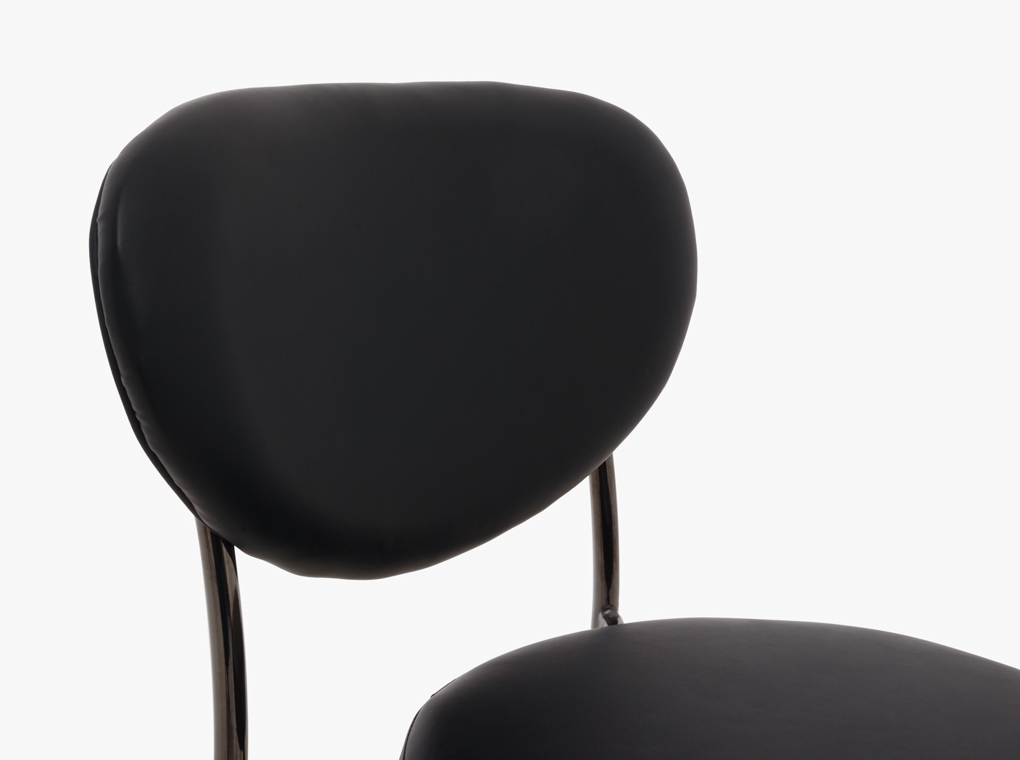 Elegáns fekete étkezőszék, króm lábbal.