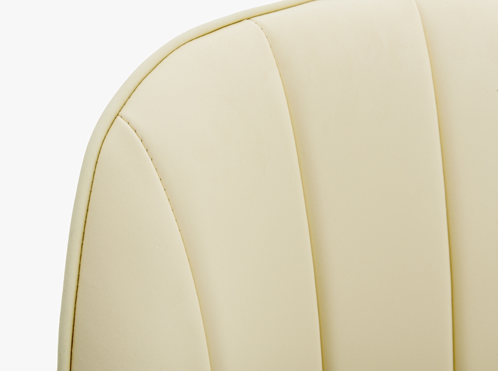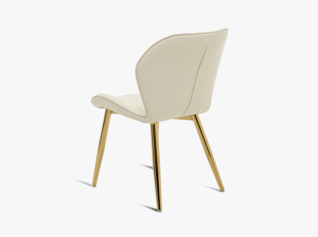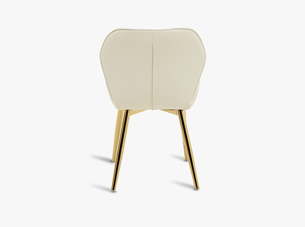 Elegáns fehér textilbőr étkezőszék, arany színű lábakkal.