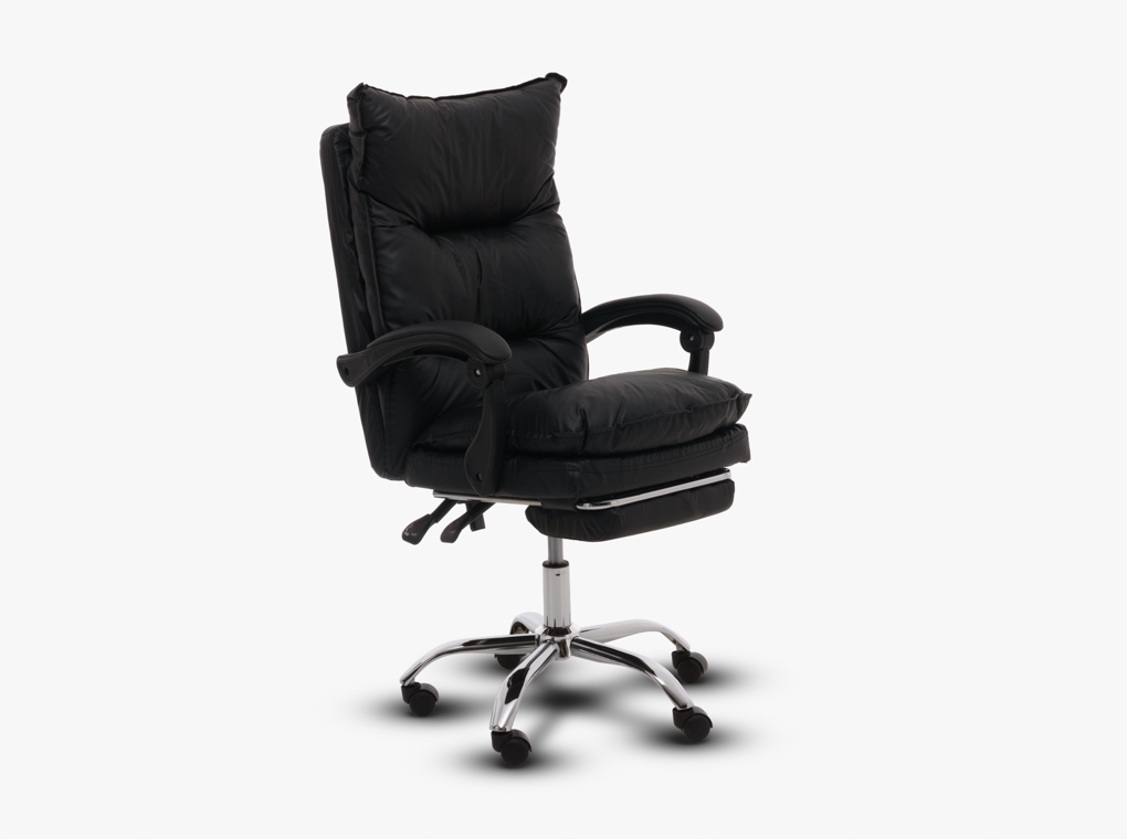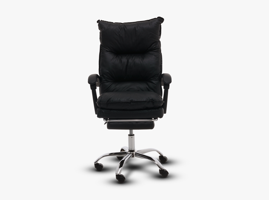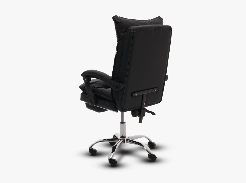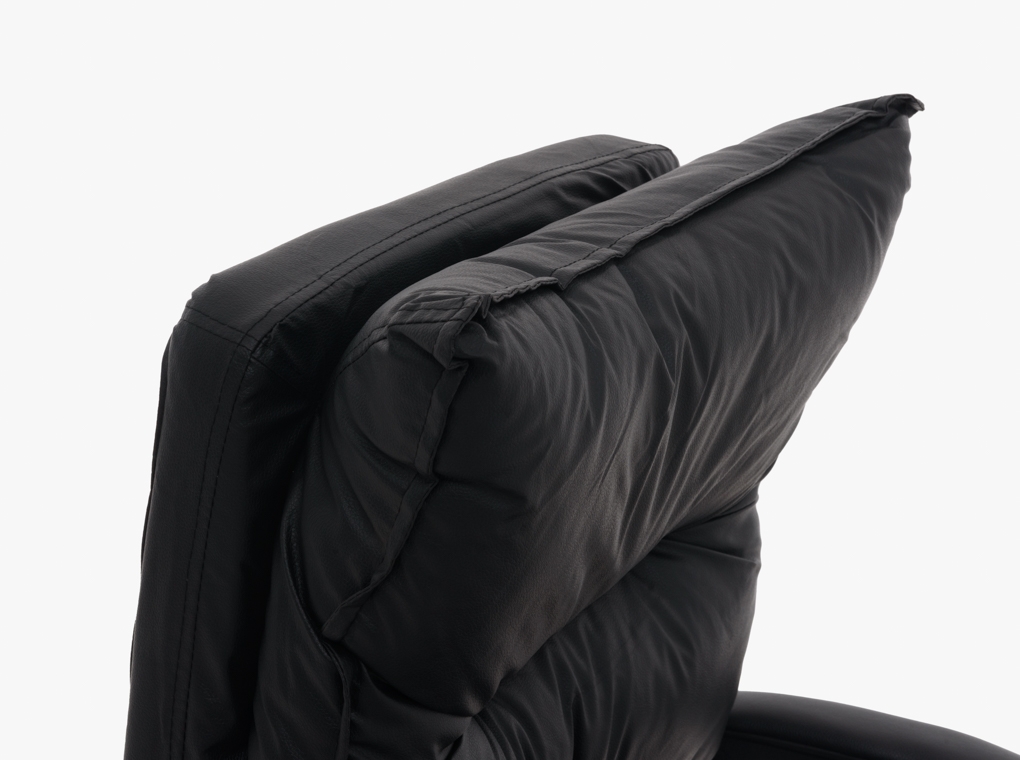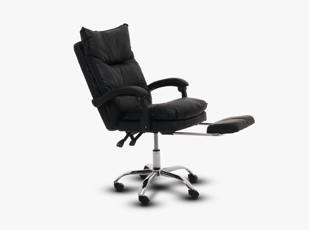 Fekete textilbőr irodaszék lábtartóval.