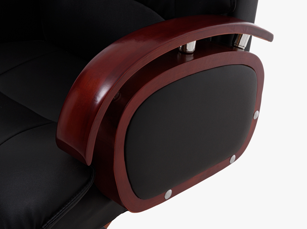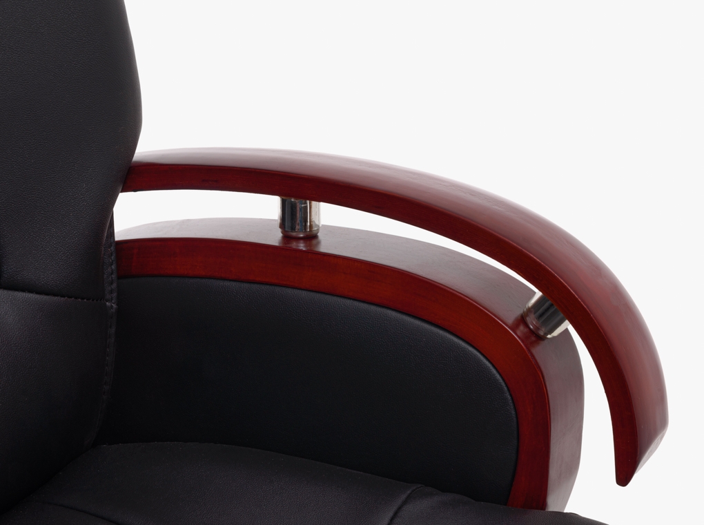 Fekete textilbőr + fa irodaszék, főnöki fotel.